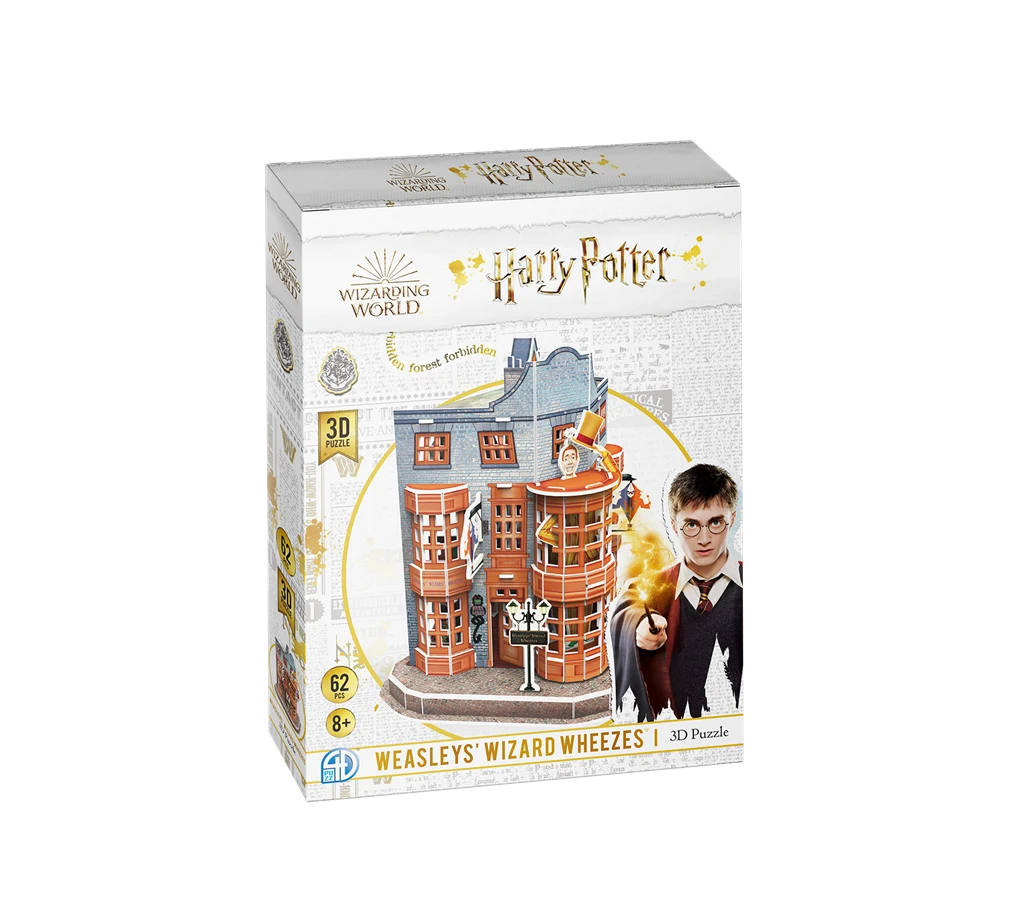 Une gamme de puzzles en 3D dont les modèles sont tirés de la série de films Harry Potter ! Des bâtiments légendaires à monter pour des résultats à faire rêver. Ce puzzle, destiné à des passionnés à partir de 8 ans, vous permet de construire le fameux magasin de farces et attrape des frères Weasley à l’aide de 62 pièces. Nul doute que vous y trouverez l’inspiration pour piéger toute votre famille et vos amis.