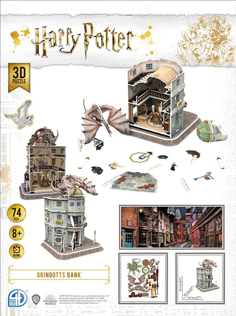 Une gamme de puzzles en 3D dont les modèles sont tirés de la série de films Harry Potter ! Des bâtiments légendaires à monter pour des résultats à faire rêver. Des puzzles destinés à des passionnés à partir de 8 ans, composés de 70 à 180 pièces selon les modèles.