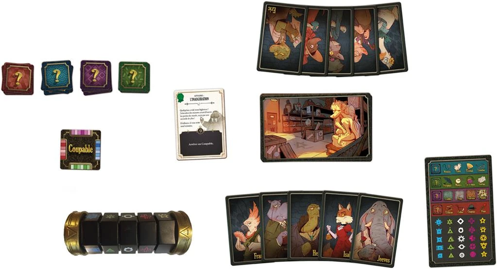 5 Minutes Mystère propose de jouer des parties très courtes et de les enchaîner à volonté. Identifiez les bons symboles sur les cartes Scène et reportez-les sur le Codex. Utilisez les indices obtenus pour éliminer des suspects. Mais attention, vous n’avez que 5 minutes ! Ne laissez pas le coupable s’échapper.