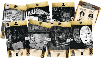 Retrouvez dans ce jeu de carte en solitaire tous les thèmes et l’ambiance si particulière des œuvres de H.P. Lovecraft, déclinés dans une ambiance de roman noir. Chaque affaire constitue une aventure indépendante au niveau de difficulté ajustable. Au cours du jeu, vous allez ajouter des cartes dans certaines d’entre elles et ainsi créer un mur d’investigation, qu’il faudra compléter coûte que coûte. L’objectif est de valider cinq cartes Indice « Puzzle » et de les rassembler sur votre mur.