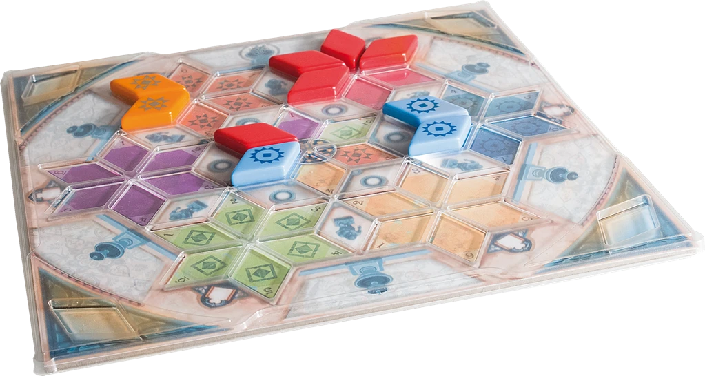 L’extension du Pavillon Étincelant, pour Azul : Pavillon d’été propose trois nouveautés. À commencer par 4 plateaux individuels en plastique transparent pour poser vos tuiles sans risque de les bousculer et ainsi garder une parfaite lisibilité de votre jeu. Ensuite, deux nouveaux plateaux et fiches de score correspondant, pour des défis à relever. Enfin, 4 pions pour noter ses points sur la piste de score.