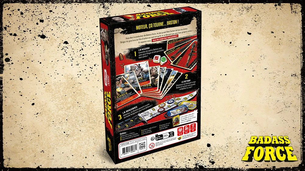 Caméra, Moteur…. Baston ! Vous êtes le producteur de Badass Force, le plus grand film d’action de tous les temps. Dirigez les gros bras du film d’action en espérant qu’ils ne se blessent pas avec leurs propres armes ! Et rappelez-vous, tous les coups bas sont permis !