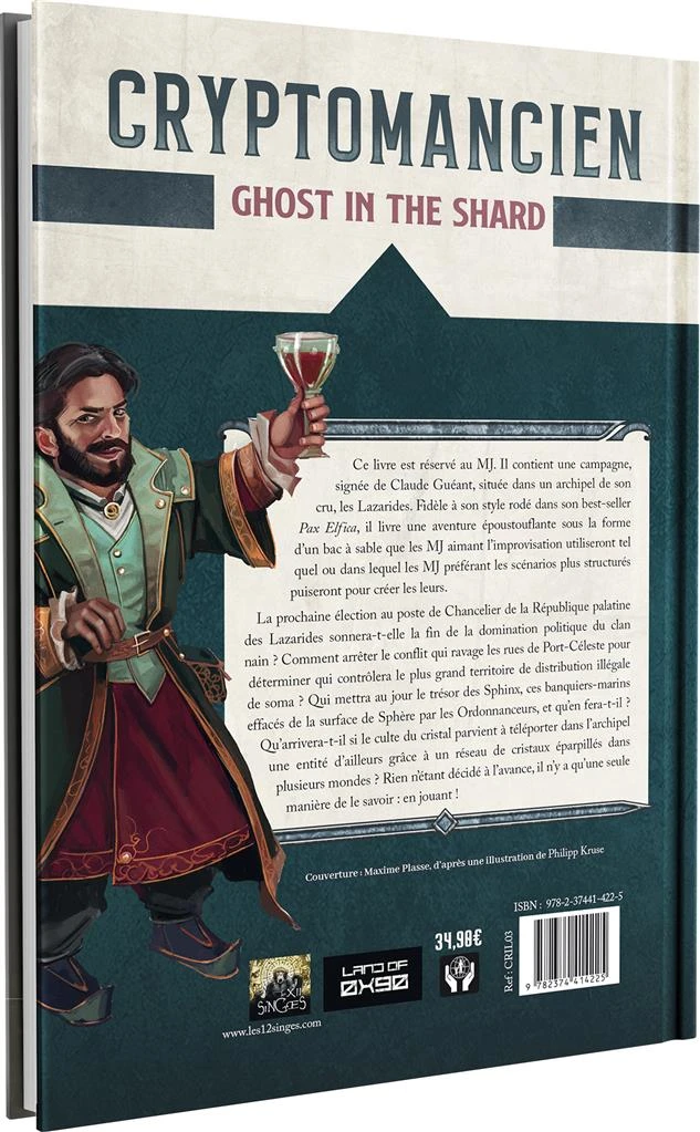 La cryptomancie vient d’une météorite qui a bouleversé le monde : ses fragments – des éclats de cristaux – permettent à leurs porteurs de communiquer par télépathie. Et il y en a des milliers… Le livre passe en revue l’impact que cela a eu sur les trois grandes civilisations, elfiques, naines et humaines. Ainsi que sur les PJ, qui sont la cible des Ordonnanceurs, des mages qui utilisent les flux de données passant dans les cristaux pour tenter de prédire et contrôler l’avenir : leurs calculs les ont amenés à classer les PJ comme des dangers.