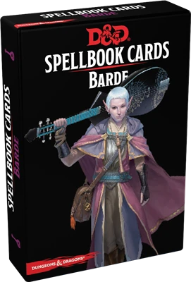 Contient 128 cartes cartonnées plastifiées pour les tours de magie et sorts de niveau 1 à 9 du barde.