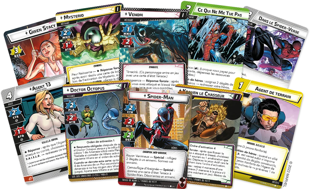 New York City a son surnom, la Grosse Pomme, son super-héros attitré, Spider-Man… Et il lui incombe de combattre le ver qui menace la ville ! L’extension Sinistres Motivations pour Marvel Champion inclut des super-vilains associés à l’homme araignée : Venom, Mysterio ou encore les Sinister Six, ainsi que les scénarios pour s’y confronter ! Ces scénarios sont jouables individuellement ou peuvent s’inscrire dans une grande campagne.