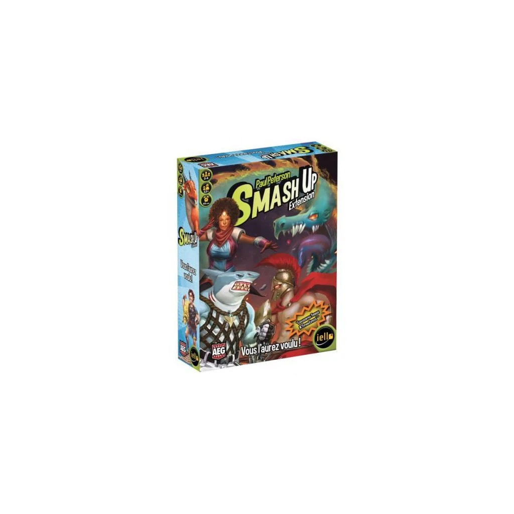 Smash Up: Vous l’aurez voulu ! contient des Requins, qui ont bien l’intention de mâchouiller leurs adversaires. Il y a aussi les Superhéros, volant hors des pages de leurs comics pour anéantir leurs ennemis. Vous avez également choisi de voir les Légendes de la Mythologie Grecque envahir votre table, impassibles devant la puissance et la force destructrice des Dragons !