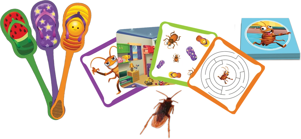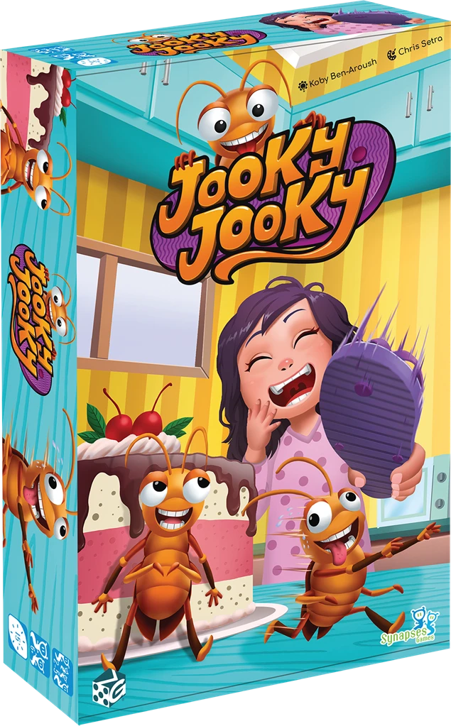 Dans Jooky Jooky, les joueurs observent la carte défi dévoilée et doivent être le plus rapide à taper sur Jooky le cafard ou sur la bonne carte, avec leur tapette. Conçu pour les familles avec enfants de 6 ans et plus, ce jeu d’observation et de rapidité est adaptable à l’âge et à la capacité de chaque public.