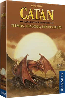 L’île de Catan est en proie à de grands changements… Et des périls rarement vus ! L’extension Trésors, Dragons & Explorateurs propose 6 scénarios inédits, pensés pour les fans de Catan. Ils leur permettront de mettre à l’épreuve leur savoir-faire. Si de nouveaux explorateurs souhaitent participer, tant mieux ! Ces parties leur laisseront, à toutes et tous, des souvenirs mémorables. Affrontez les redoutables dragons du désert, construisez un grand canal pour irriguer les terres arides et découvrez des trésors cachés.