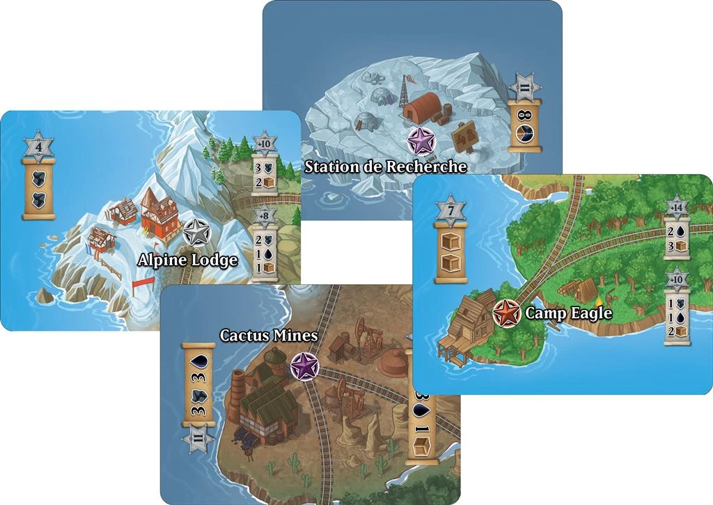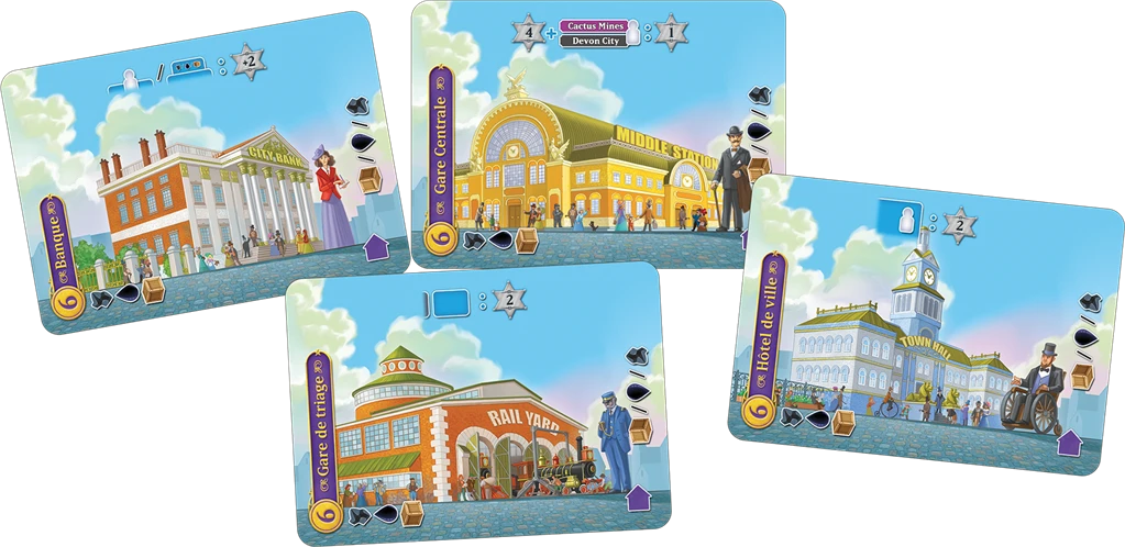Utilisez chacune de vos cartes comme locomotives, wagons de marchandises, transports de passagers ou bâtiments. Construisez le meilleur train et remplissez des contrats pour gagner la partie.