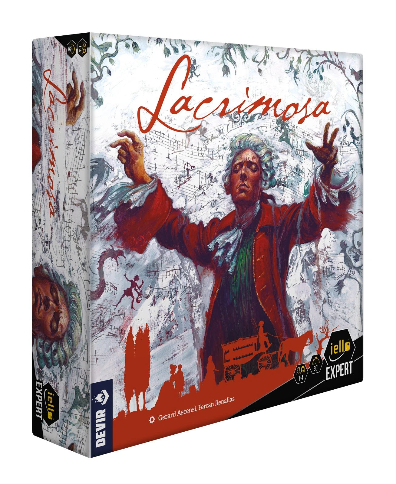 Lacrimosa est un eurogame pour joueurs experts dans lequels les joueurs jouent le rôle de mécènes du défunt musicien, contribuant avec leurs fonds pour achever la dernière œuvre du compositeur.