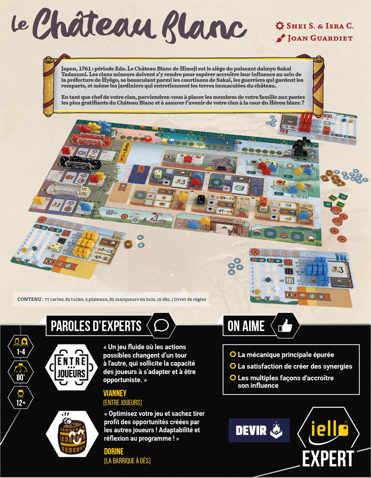 Avec des règles accessibles et un cadre très soigné, La Château Blanc est un titre polyvalent qui s’intégre facilement dans différents groupes de joueurs.