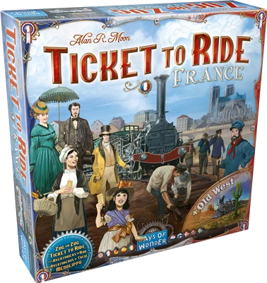 - La carte de France : La carte française crĂ©e une nouvelle maniĂšre d’aborder la compĂ©tition entre les joueurs en les forçant Ă repenser leur stratĂ©gie. Le jeu apporte une nouvelle rĂšgle majeure : Ă chaque fois que vous piochez une carte Wagon, vous devez construire une voie ferrĂ©e en ajoutant une rĂ©glette sur le plateau. Construire une route n’apporte pas la garantie d’en prendre le contrĂŽle par la suite. ContrĂŽler une zone avec les voies d’une mĂȘme couleur peut s’avĂ©rer judicieux. Bluffez et trompez vos adversaires sur vos rĂ©elles intentions et volez le contrĂŽle d’une voie construite par le camp opposĂ©.