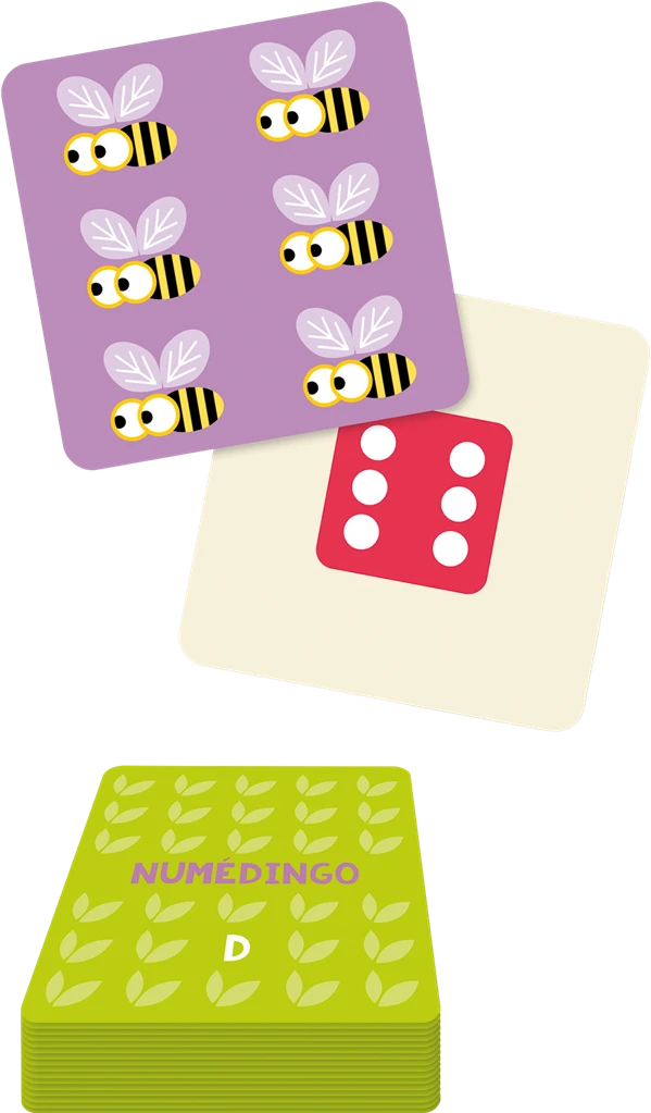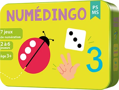 7 petits jeux pour travailler les nombres de 1 à 6 : les cartes les illustrent de 12 façons différentes (collections, dés, doigts de la main…). Les jeux sont organisés en 2 niveaux, PS et MS, et permettent de travailler la numération : l’égalité des quantités représentées de différentes façons, les suites de nombres, les additions de 2 nombres, les comparaisons entre nombres ! Une façon de s’amuser tout en apprenant !