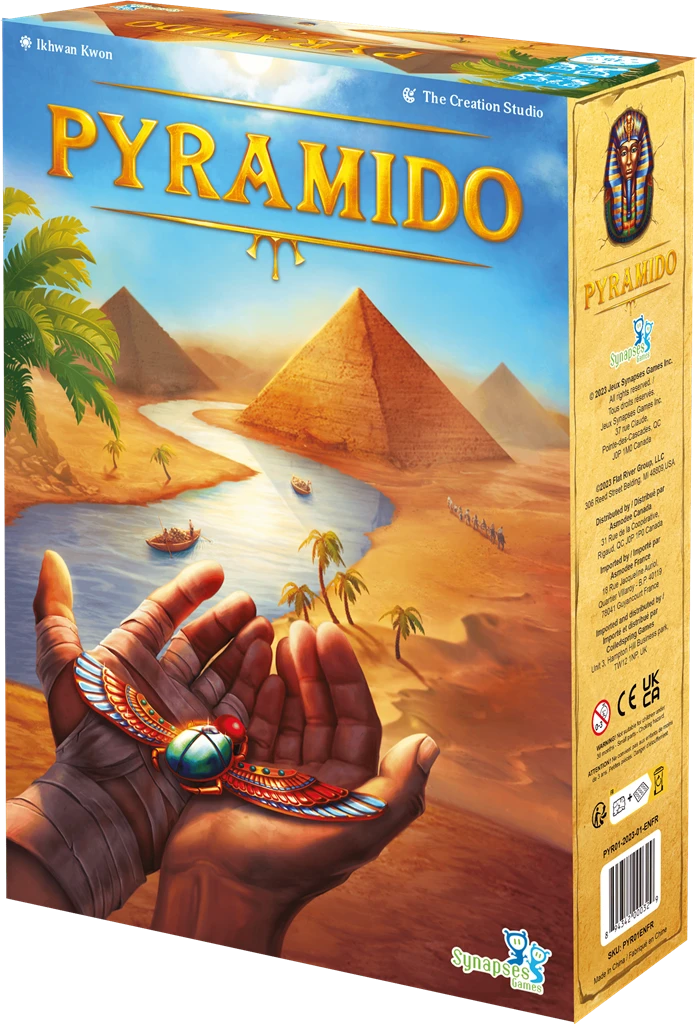 Pyramido est un jeu de placement de tuiles et d’ouvriers où chaque étage de la pyramide crée des connexions entre eux. Chaque choix de Domino et son positionnement ont un impact significatif puisque les étages précédents influencent le score