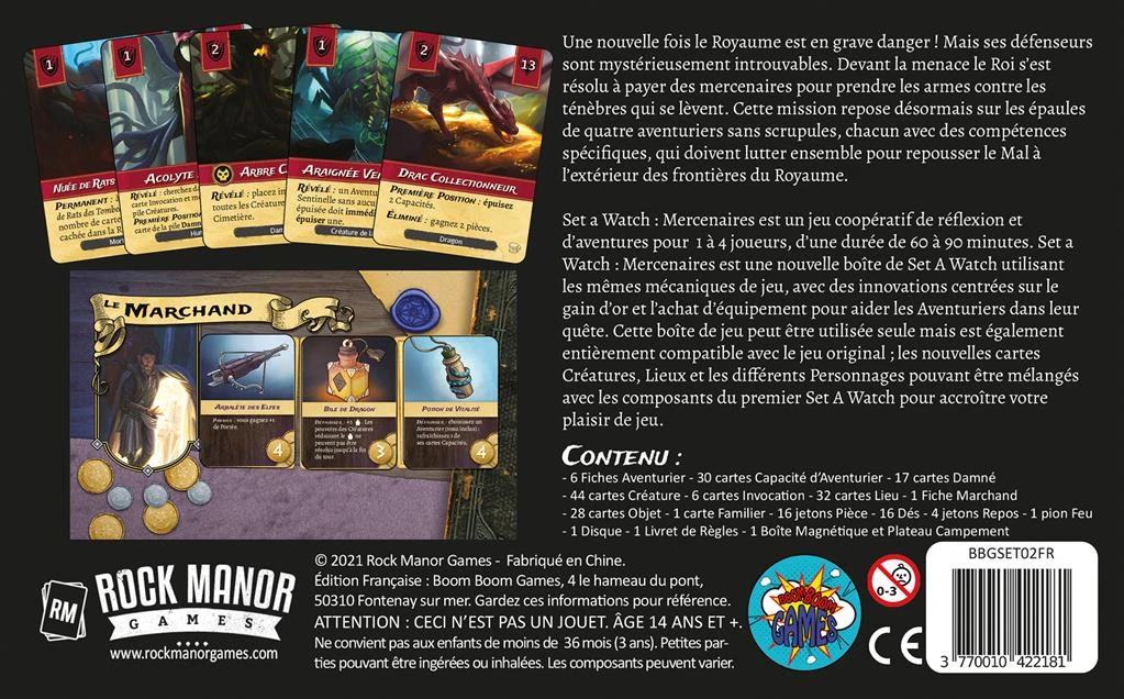 Set a Watch : Mercenaires est un jeu coopératif de Todd Walsh, pour 1 à 4 joueurs, d’une durée de 60mn.