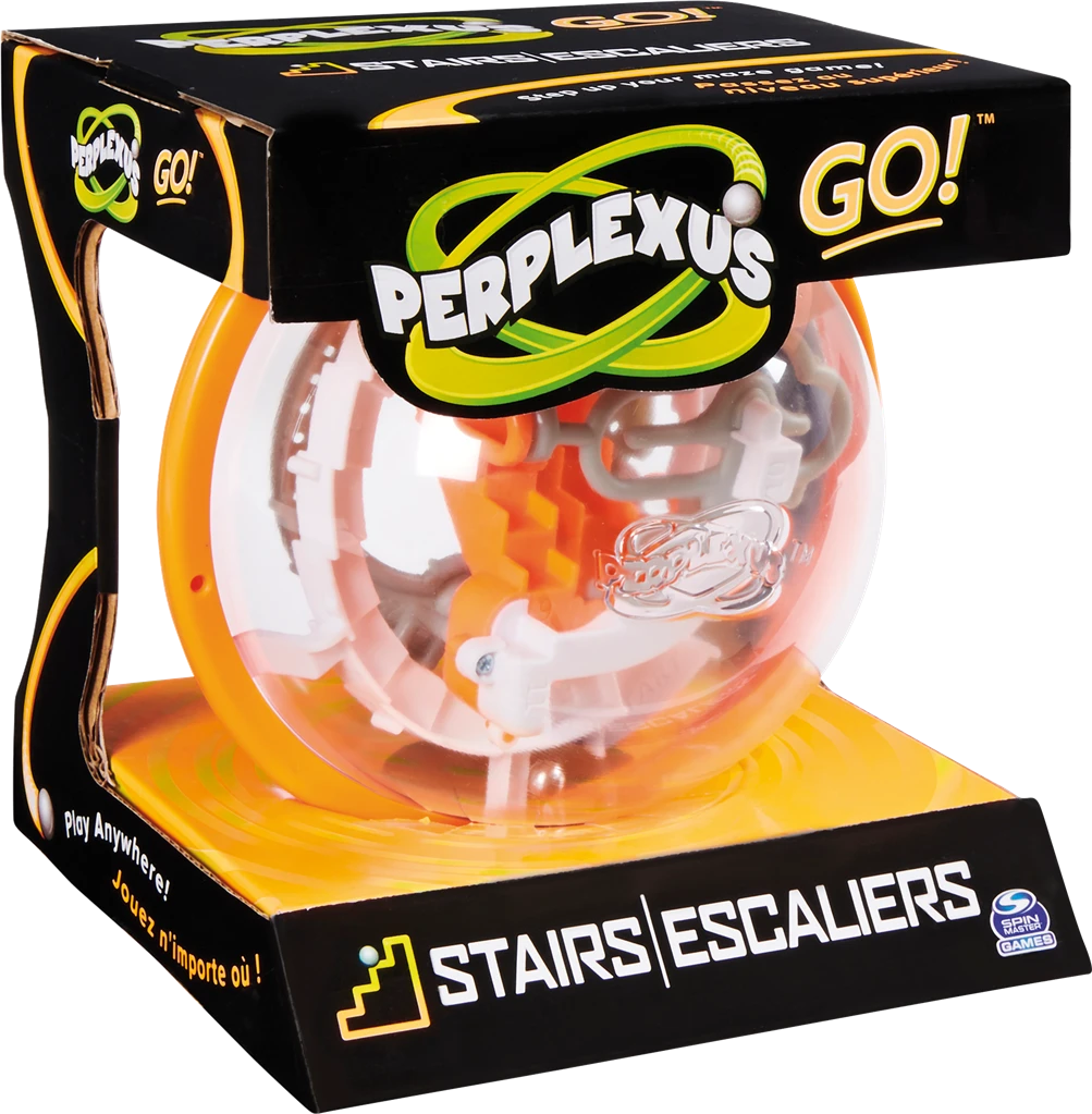 Les Perplexus Go sont à mi-chemin des Perplexus classiques et des mini-Perplexus. Plus faciles à prendre en main et à transporter, mais tout aussi redoutables ! Leurs 35 étapes sont à votre portée, mais non sans de nombreux essais ! Deux versions sont disponibles : « Escalier » et « Spirale ».