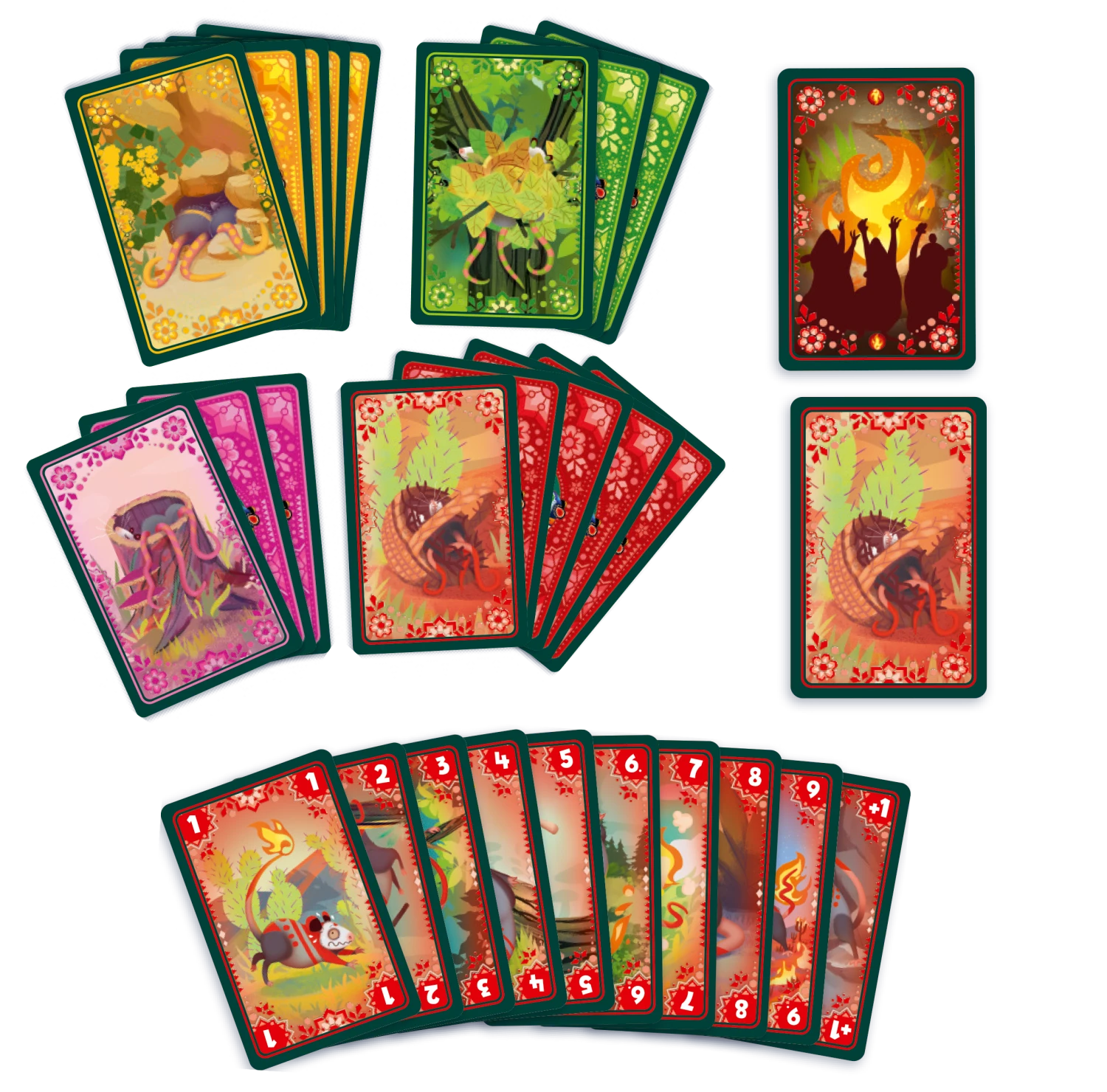 Au début de chaque tour, sélectionnez soigneusement 3 cartes parmi un choix allant jusqu’à 10. Votre objectif ? Jouer une carte qui dépasse d’un point la dernière carte jouée, ou faire le choix tactique de passer votre tour. Si la pile de jeu indique toujours votre carte lorsque votre tour revient, c’est jackpot ! Vous empochez une carte de feu, ces précieuses étincelles qui vous rapprochent de la victoire. Et ce n’est pas tout : parfois, vous aurez l’opportunité de dérober des cartes de feu à vos adversaires !
