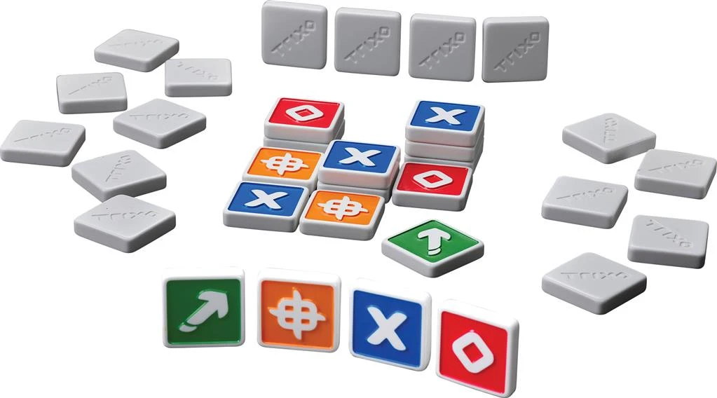36 piÚces (14 piÚces «X», 14 piÚces «O», 5 piÚces Trixo, 3 piÚces flÚche), 1 sac, 1 livret de rÚgles